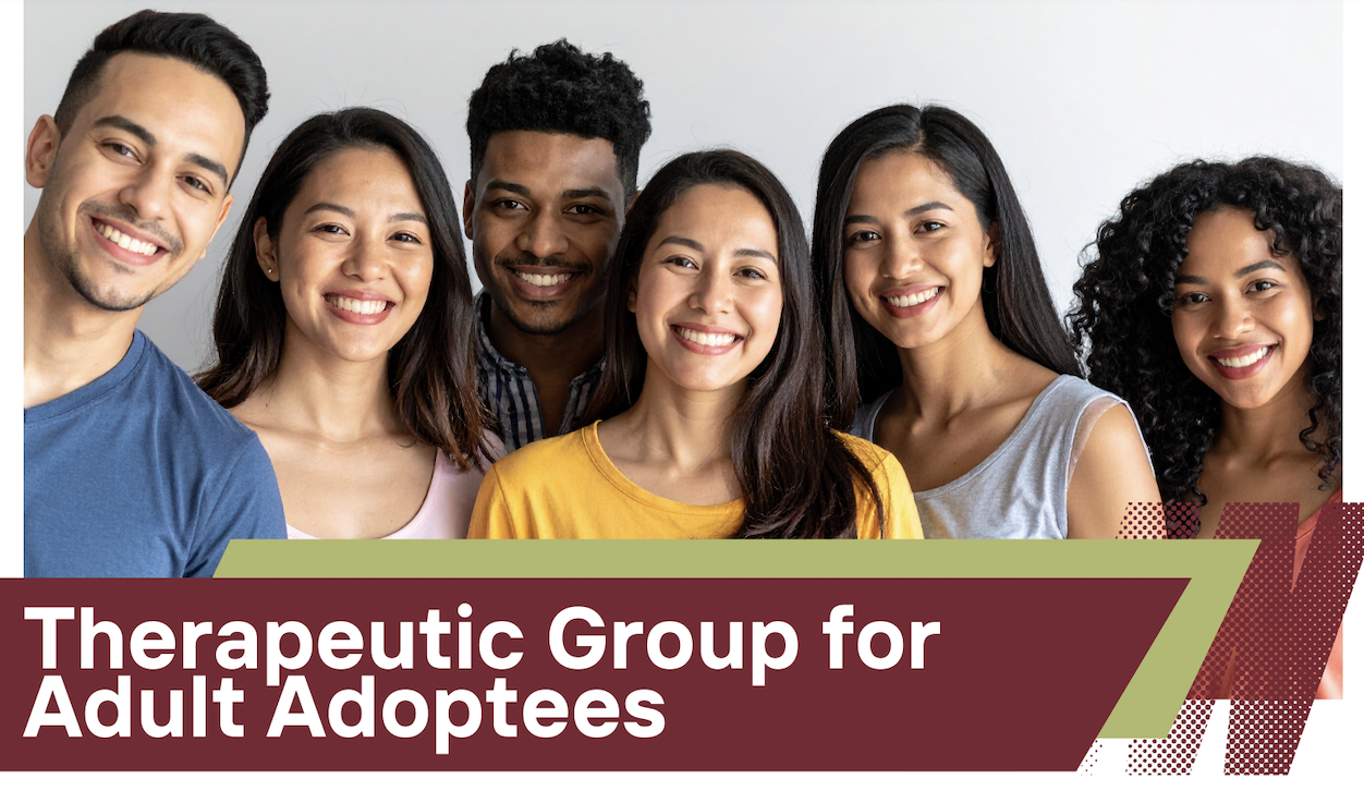 Join Lelan Lockwood-Maldonado, CFCE Therapist and adoptee herself, for a 6-week adult adoptee therapy group where members can create social connections, improve coping skills, and explore their adoption narratives! Our group will discuss the many emotions that come with the adoptee experience and empower each other to embrace our unique adoption stories.