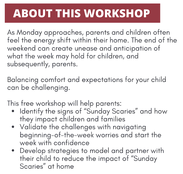 CFCE offers workshops to parents and caregivers, on various topics such as divorce, loss, anxiety, social skills, and more!